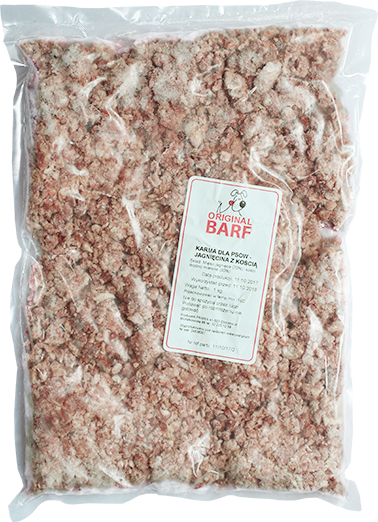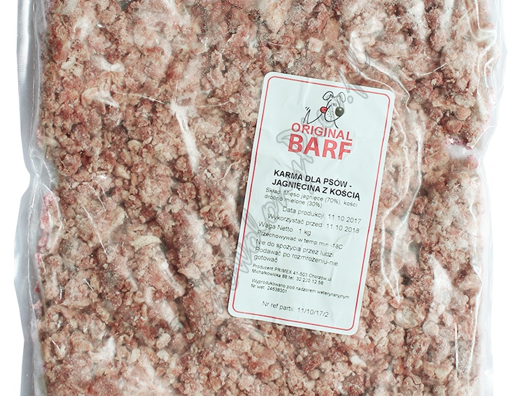 | Skład : | Mięso jagnięce mielone (70%), kości jagnięce mielone (30%) |
